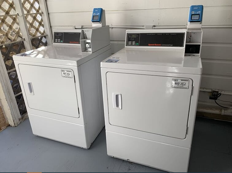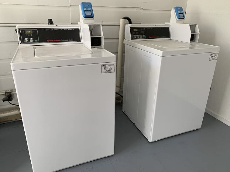 The units do not have washers and dryers, but we do have an onsite laundry room with modern washers and dryers that accept payment via coins or Credit/Debit Cards.